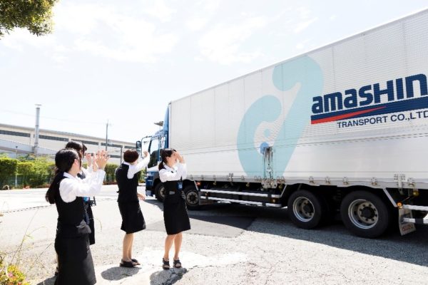事務のお仕事は、ドライバーさんが安全に気持ち良く働ける環境をつくること。「今日もご安全に」「頑張ってきてね」と、明るい声掛けが大切です。